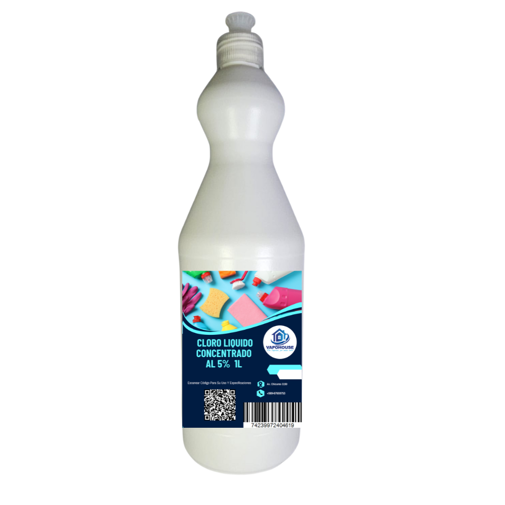 🧼 CLORO TRADICIONAL 1L VAPOHOUSE – Limpieza y Desinfección Total 🦠