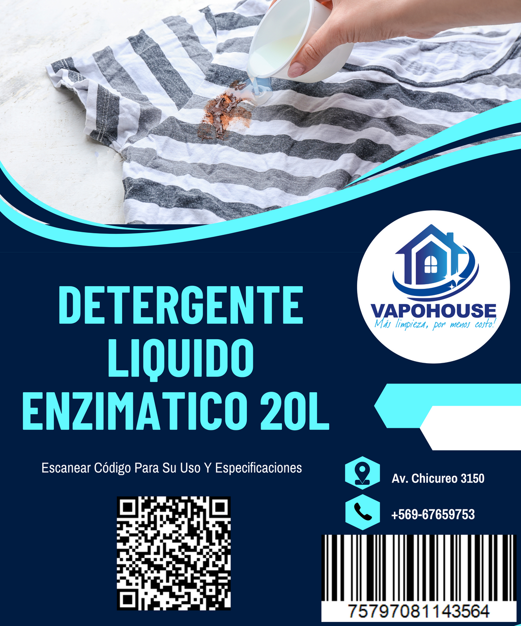 El Detergente Enzimático Líquido es un detergente líquido concentrado ideal para el lavado de prendas en máquinas convencionales, automáticas, semiautomáticas, domésticas e industriales. Su fórmula con enzimas activas descompone y elimina manchas orgánicas con facilidad.
