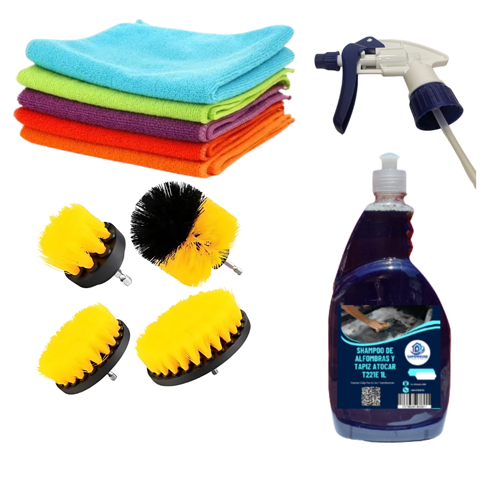 Este set está diseñado para quienes buscan dejar impecables sus tapices, alfombras, sillones, sillas de auto y superficies textiles, ya sea en el hogar o en el automóvil.
