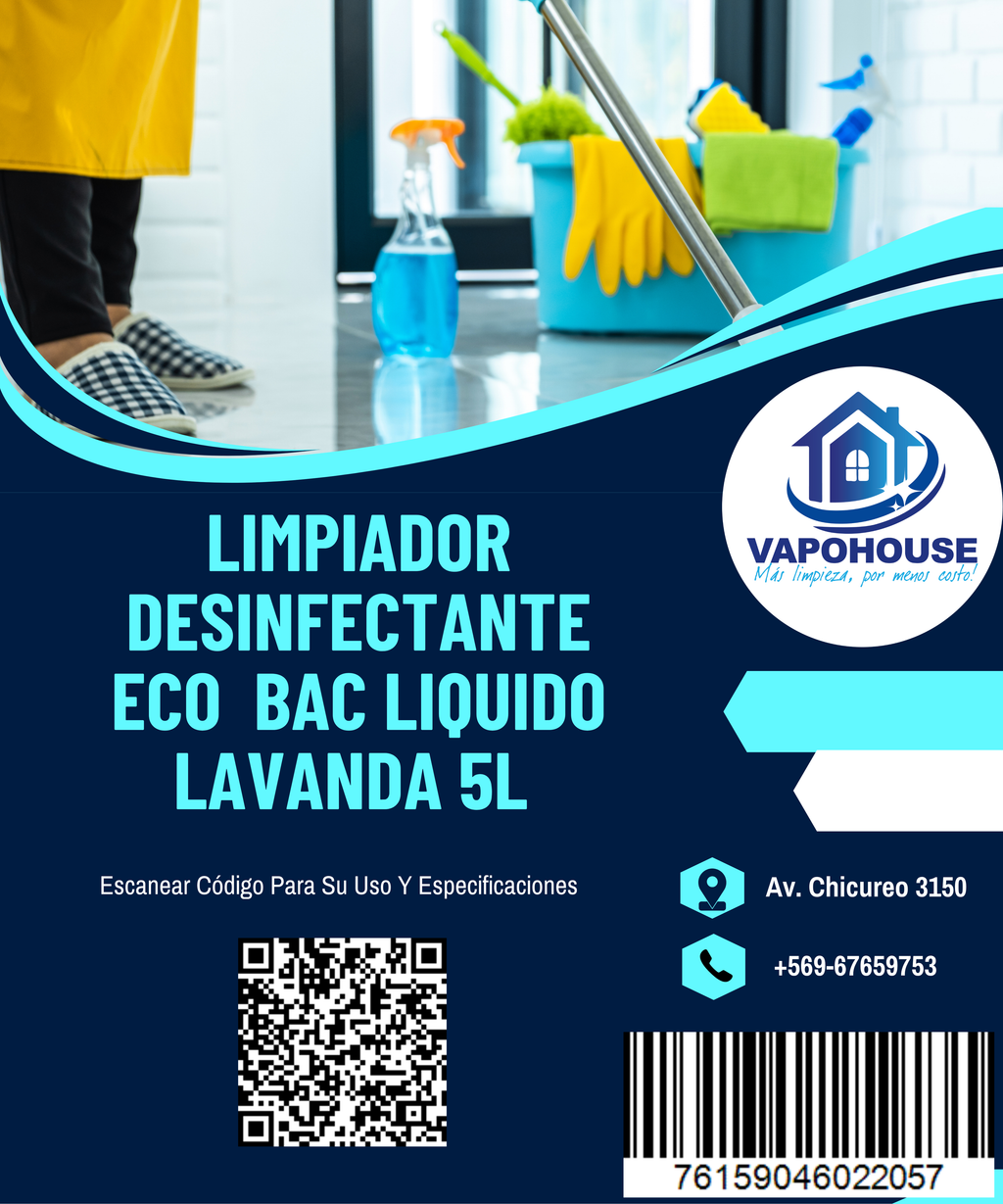 El BAC Lavanda Vapohouse es un limpiador desinfectante líquido listo para usar, formulado con amonio cuaternario de última generación, ideal para mantener tus espacios limpios, higienizados y con un agradable aroma a lavanda.